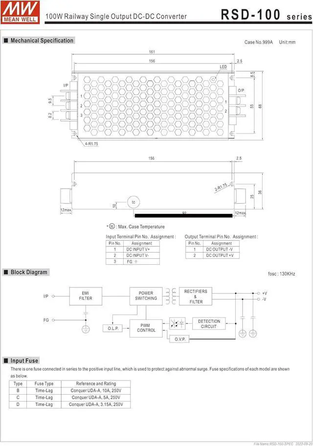 Protections: Short circuit / Overload / Over voltage /lnput reverse polarity