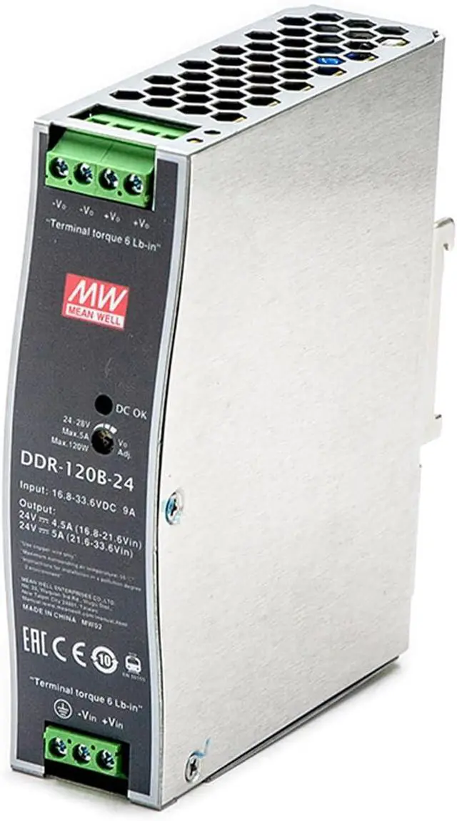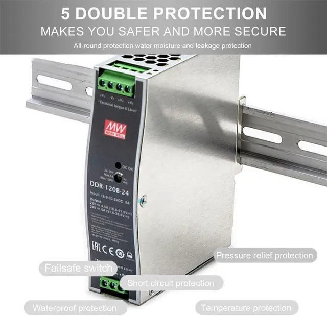 Enhanced System Safety with Built-in Protections: The DDR-120B-24 incorporates short circuit, overload, over-voltage, and reverse polarity protection, safeguarding both the converter and connected equipment from potential damage.