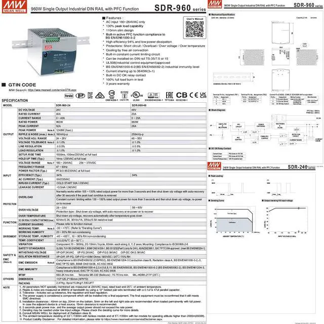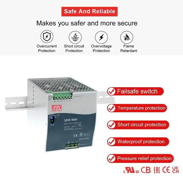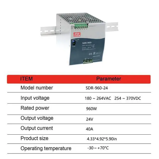 High-Performance Industrial Power: Delivering a robust 960W at 24V (40A), this power supply ensures consistent and reliable performance for demanding industrial automation systems.