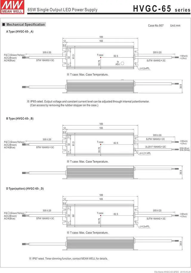 Constant current mode 180~528VAC wide input range Suitable for dry, damp, and wet location Suitable for LED lighting and street lighting applications 5 years warranty