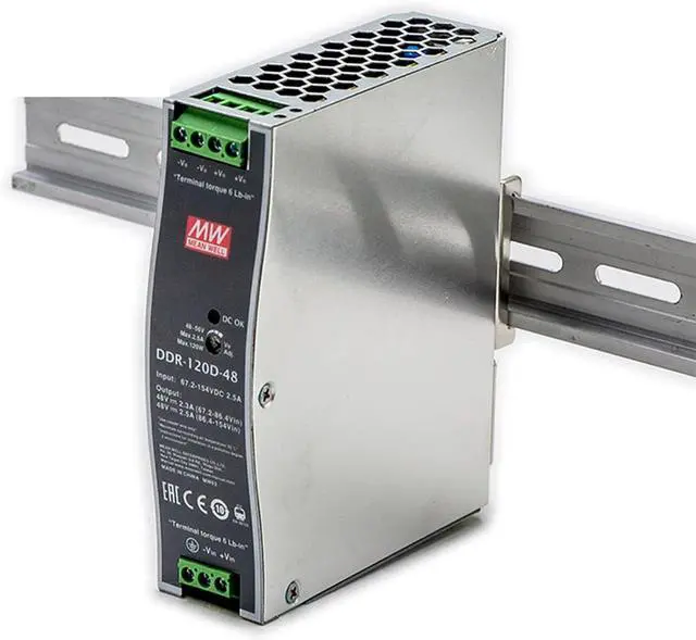 • Space-Saving DIN Rail Mounting: Featuring a convenient DIN Rail mount design, the DDR-120D-48 allows for easy and secure installation within standard control cabinets. Its compact size (125.2mm x 102mm x 32mm) optimizes space utilization.