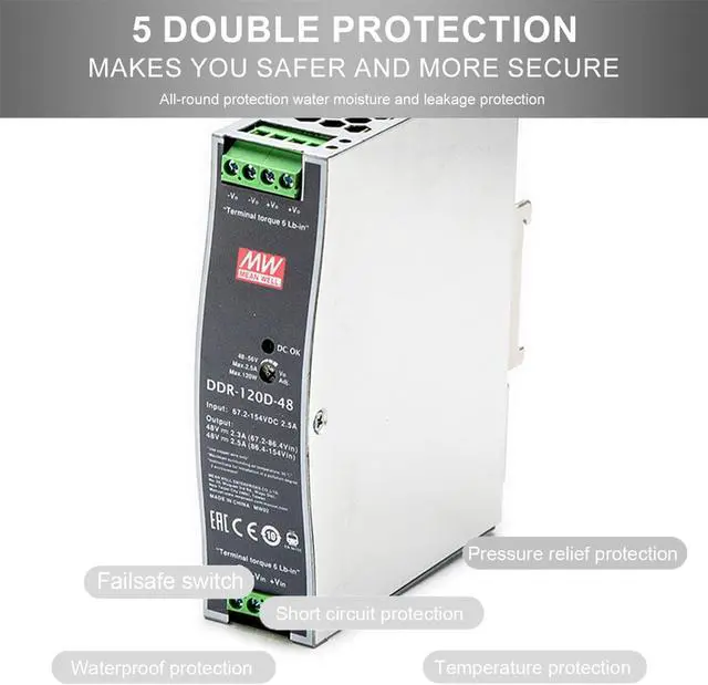 • Safe and Certified: Designed with safety in mind, the DDR-120D-48 meets stringent safety standards, including IEC 62368-1 and UL 62368-1. These certifications ensure reliable operation and protection for your valuable equipment.