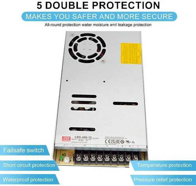 Industrial-Grade Reliability: Built for demanding environments, the LRS-450-12 is designed for long-term performance and incorporates protection against overvoltage, overload, and short circuits, ensuring safe and reliable operation.