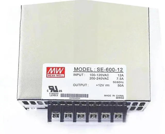 The SE-600-12 is a 600W single output switching power supply designed for cost-sensitive data center and server applications. Its 12V output and 50A current capacity can power multiple devices or high-performance servers. The unit features a wide universal AC input range of 90 to 264VAC (switch selectable) or 254 to 370VDC, making it suitable for various global power grids. With an efficiency rating of 78% to 88%, the SE-600-12 reduces energy waste and reduces operating costs. A built-in DC fan provides forced air cooling, ensuring reliable operation even under heavy loads. Comprehensive protection features, including short circuit, overload, over voltage, and over temperature protection, safeguard your valuable equipment. The SE-600-12 complies with UL62368-1 and other international safety standards, guaranteeing safe and reliable performance in critical applications. Its compact size and low profile design make it easy to integrate into various system configurations. This power supply is ideal for powering servers, data storage equipment, networking devices, and other industrial applications requiring a reliable and efficient 12V power source. The remote sense function allows for voltage compensation at the load, ensuring precise voltage supply. Choose the SE-600-12 for a Economical and high-performance power solution for your data center needs.