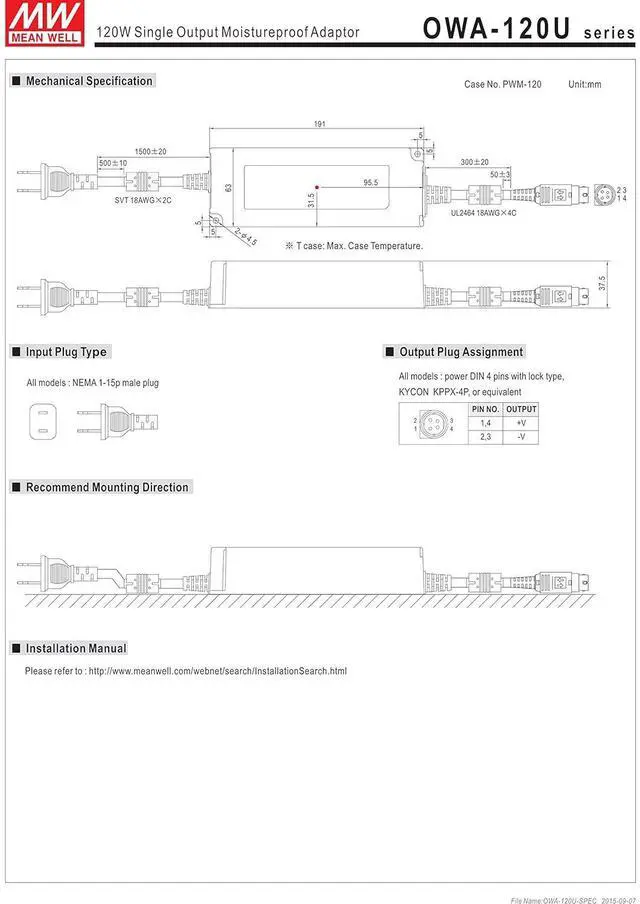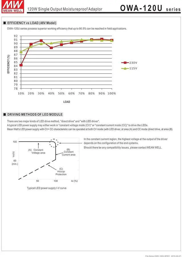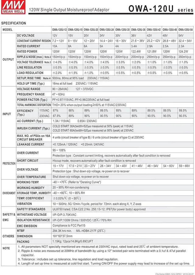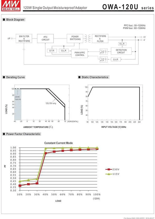 Primary Output Voltage (VDC): 24 Output Current (Amps): 5 Maximum Output Power (Watts): 120 Input Voltage (VAC): 90 to 264 Input Frequency (Hz): 47 to 63