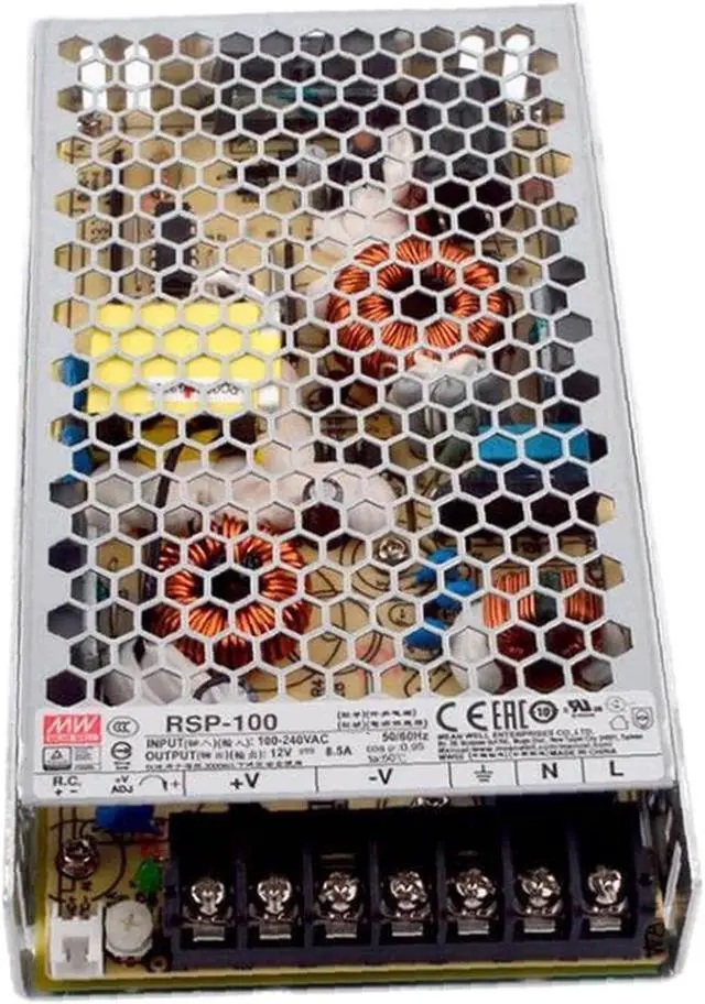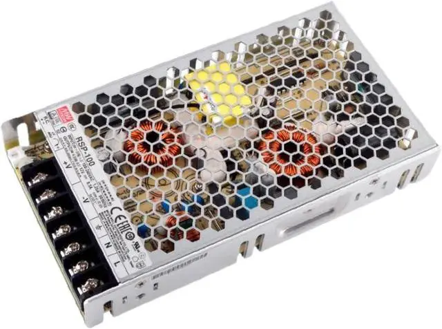 The TorqCali RSP-100-15 delivers a stable 15V output with 100W of power, featuring a built-in PFC function for enhanced power factor correction. This makes it ideal for industrial applications, LED lighting, and RF systems, minimizing harmonic distortion and maximizing energy efficiency.