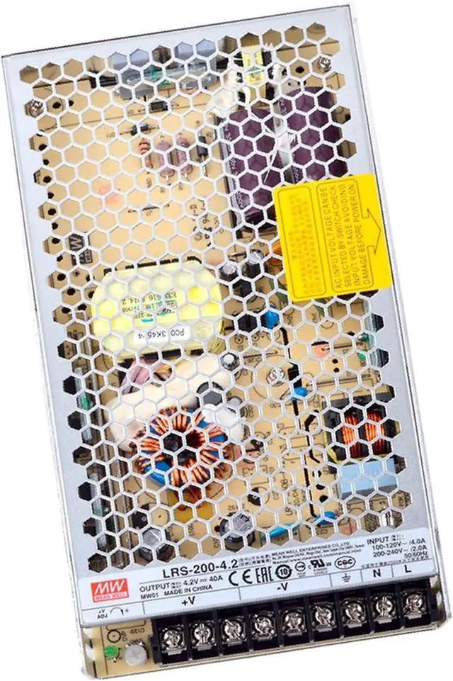 Powerful 4.2V Output: The TorqCali LRS-200-4.2 provides a reliable 4.2V DC output with a high current capacity of 40A, delivering up to 168W of power for demanding applications.