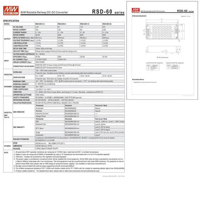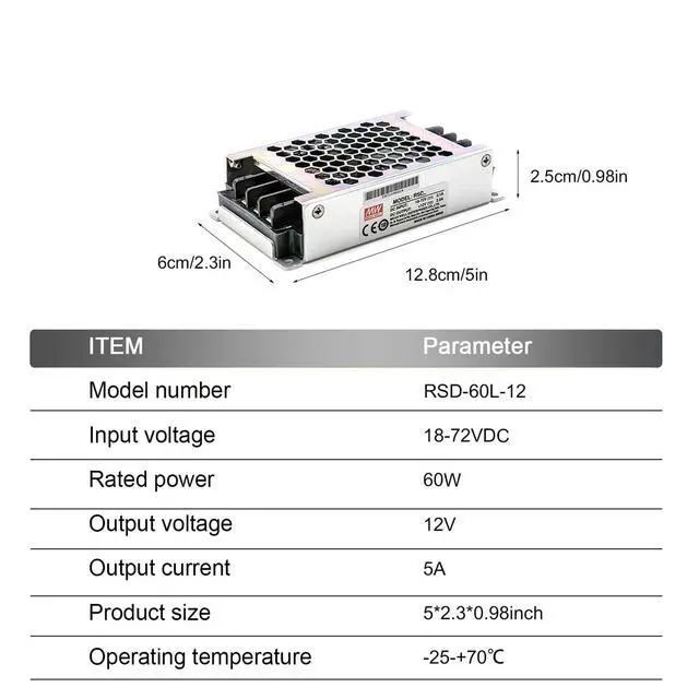 Delivers a stable 12V constant current output at 60W, suitable for railway and various industrial applications.