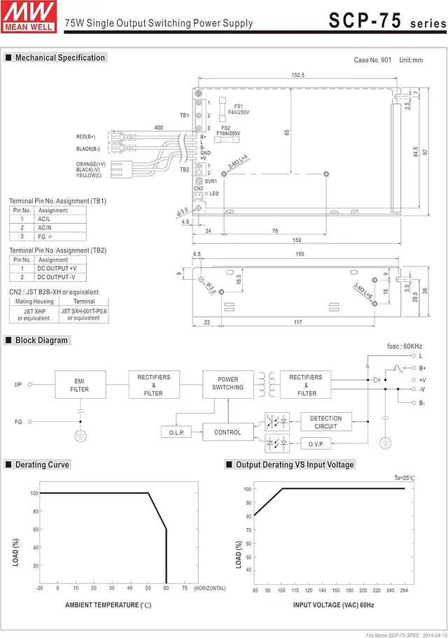 No load power consumption <0.75W Universal AC input / Full range Cooling by free air convection Protections: Short circuit / Overload / Over voltage / Battery reverse polarity protection by fuse 2 years warranty