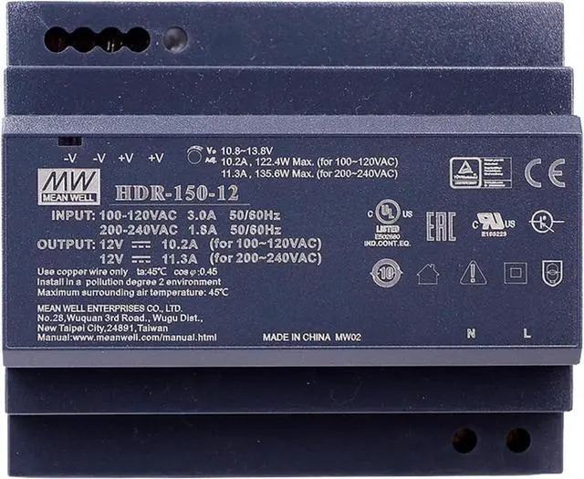 High-Performance Industrial Power: 12V 10.2A 122.4W output, universal 85-264VAC input, Class II isolation, and comprehensive protection for reliable operation in demanding applications.