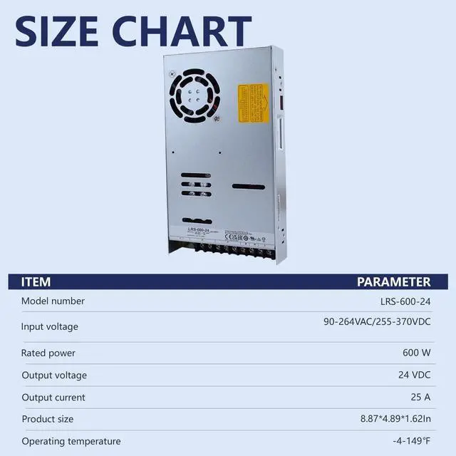 High Efficiency and Reliable Cooling. Operating at up to 91% efficiency, it includes an internal DC fan for forced air cooling, ensuring stable performance in temperatures from -20°C to +65°C.