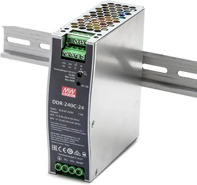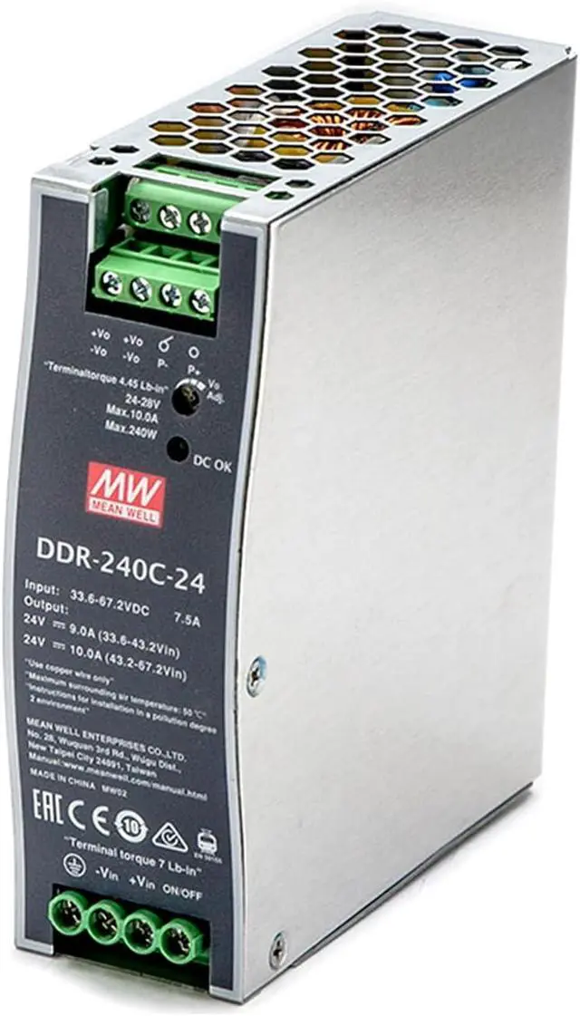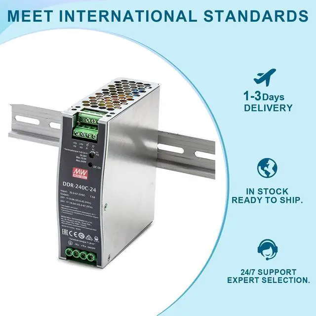 Superior Efficiency: DDR-240C-24 boasts 91% energy efficiency, delivering 24V DC, 10A current, 240W power; Significantly reduces heat generation and energy losses in industrial systems