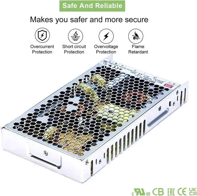 Safety Certified: Built-in short circuit/overload/overvoltage/overtemperature protections. Complies with UL/TUV/CB/CE safety standards, ensuring safe operation.