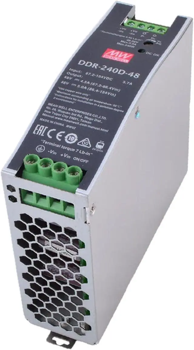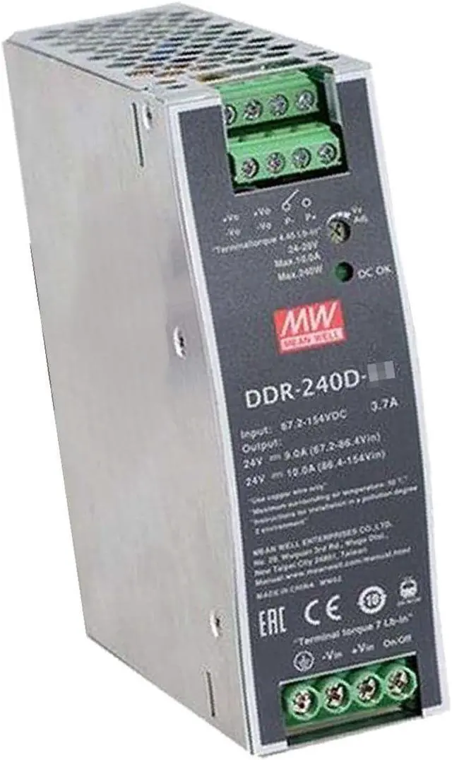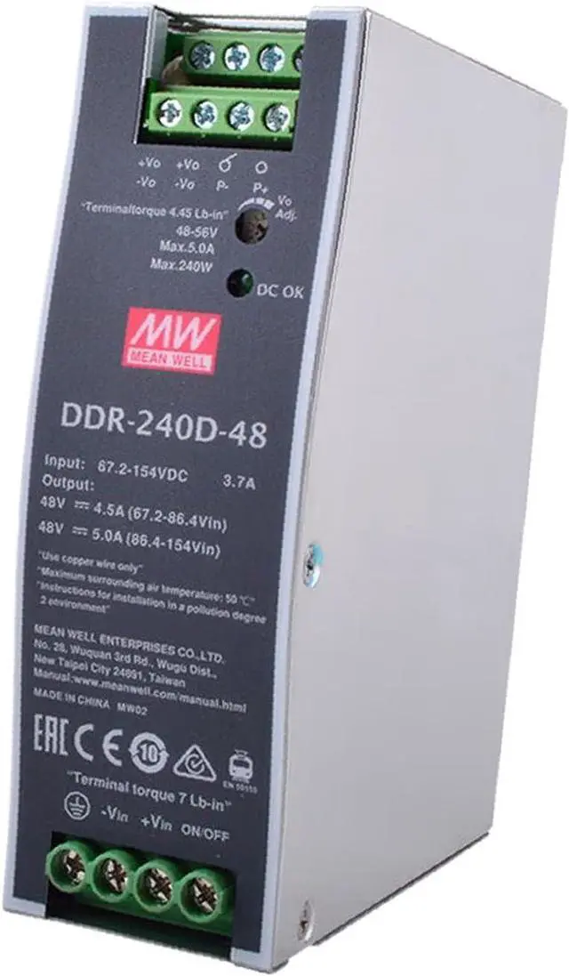 High Reliability for Demanding Applications: Designed for mission-critical industrial and railway systems, the DDR-240D-48 ensures stable power delivery under harsh conditions, ideal for heavy-duty machinery and data centers.