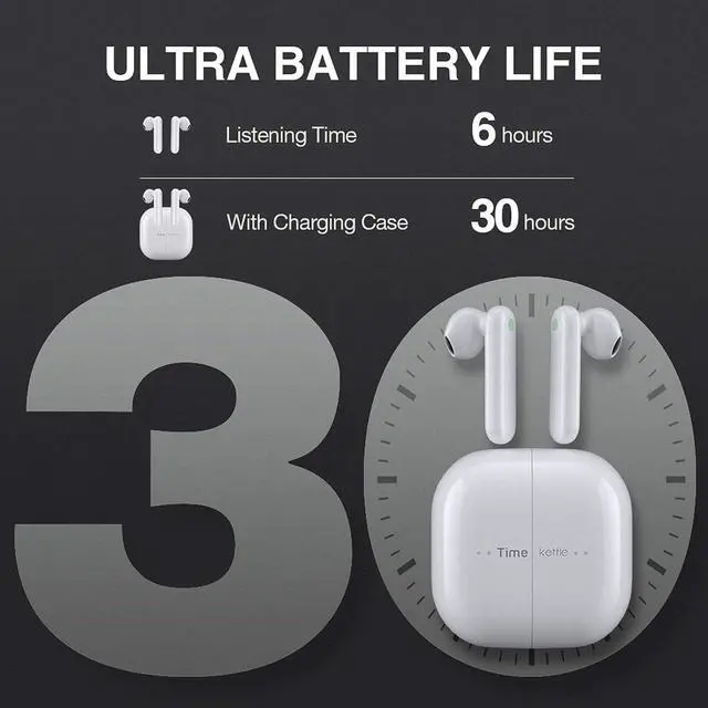Smart touch control and ultra battery life: with smart touch sensors, play favorite music, or conveniently answer/reject a call with ease. Play/pause/skip the track, activate voice assistant with a quick touch (compatible with Apple and Google). M2 wireless earbuds support up to 6 hours of listening and translating per charge, portable charging case extends playtime up to 30 hours. Taking this on-the-go device with you, for up to 7 days of traveling or business trips without charging it again
