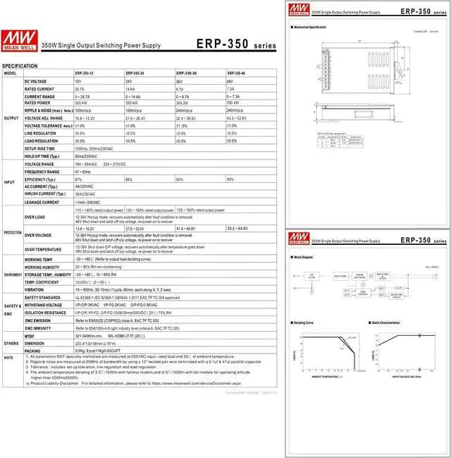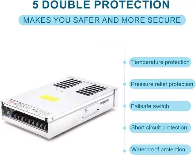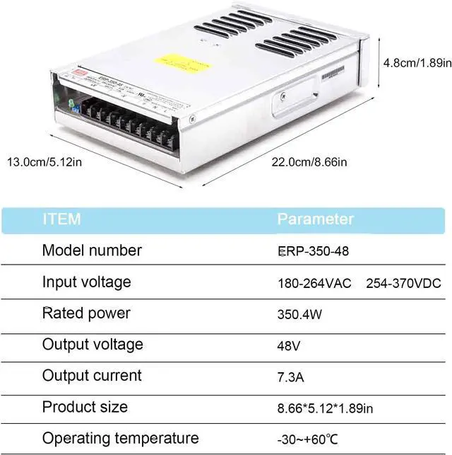 Robust 48V Industrial Power: UL certified, 48V 7.3A 350.4W output. Withstands 300VAC surge for 5 seconds, ensuring stable performance in demanding applications.