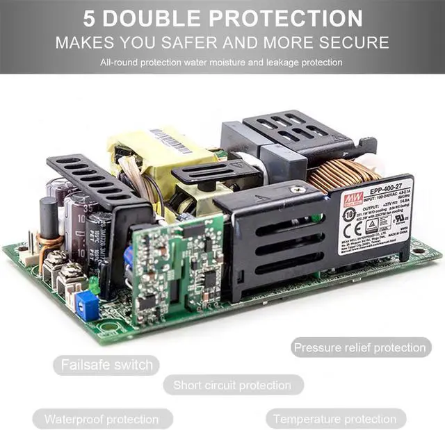 High Power and Efficiency: The TorqCali EPP-400-27 delivers 400W of power at a constant 27V, achieving up to 93.5% efficiency. Its active PFC function ensures optimal power factor and minimizes power loss.