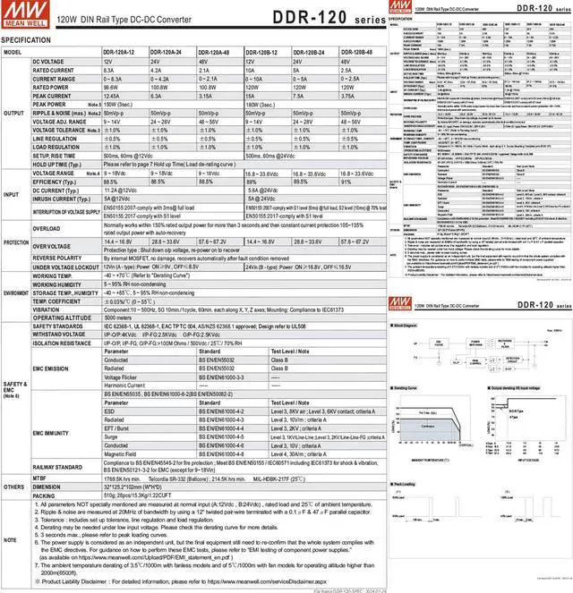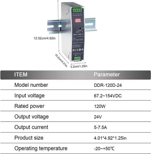 Compact Design and Easy Installation: Featuring a space-saving DIN Rail mount design, the DDR-120D-24 allows for quick and easy installation in standard control cabinets. Its compact size (125.2mm x 102mm x 32mm) is ideal for space-constrained applications.
