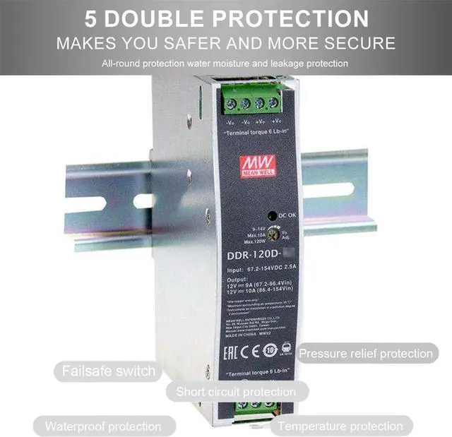 Safe and Reliable: This DIN Rail power supply meets stringent safety standards, including IEC 62368-1 and UL 62368-1, ensuring reliable operation and protection for your valuable equipment.