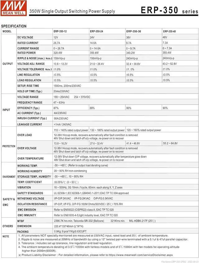 Protections: Short circuit / Overload / Over voltage/Over temperature