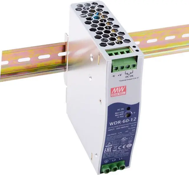 Single and two phase wide input range Short circuit / Overload / Over voltage / Over temperature Built-in constant current limiting circuit Can be installed on DIN rail TS-35 / 7.5 or 15