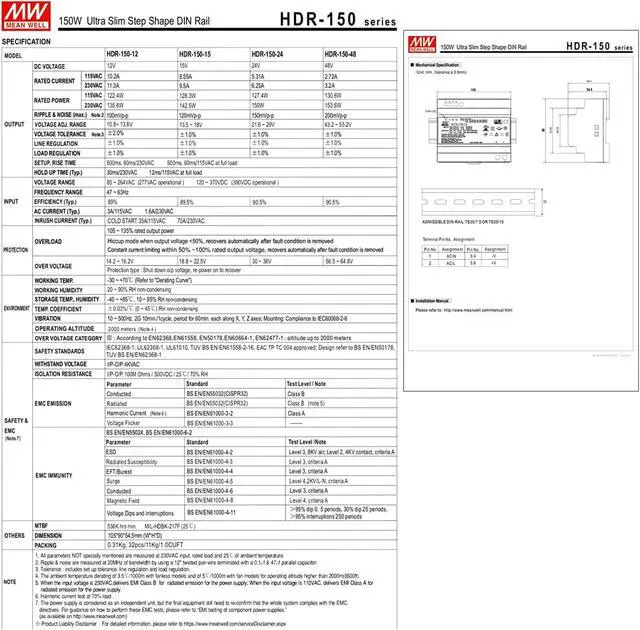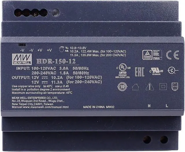 The HDR-150-12 prioritizes safety and reliability. It features built-in protections against overloads, over-voltage, short circuits, and over-temperature, ensuring the safety of both the power supply and your connected equipment.