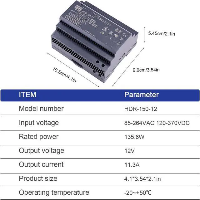 The TorqCali HDR-150-12 is a reliable and efficient 150W single output DIN rail power supply designed for demanding industrial applications. It delivers a stable 12V DC output with a maximum current of 12.5A, providing a consistent and robust power source for your industrial equipment.