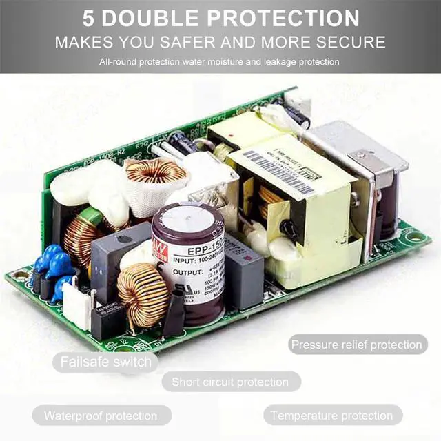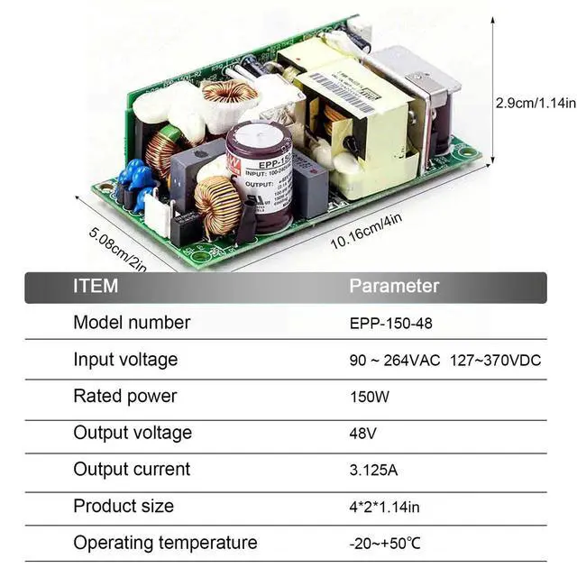 Comprehensive Protection Circuitry: The EPP-150-48 features integrated protection against short circuits, overload, over voltage, and over temperature, ensuring the safety and longevity of connected equipment.