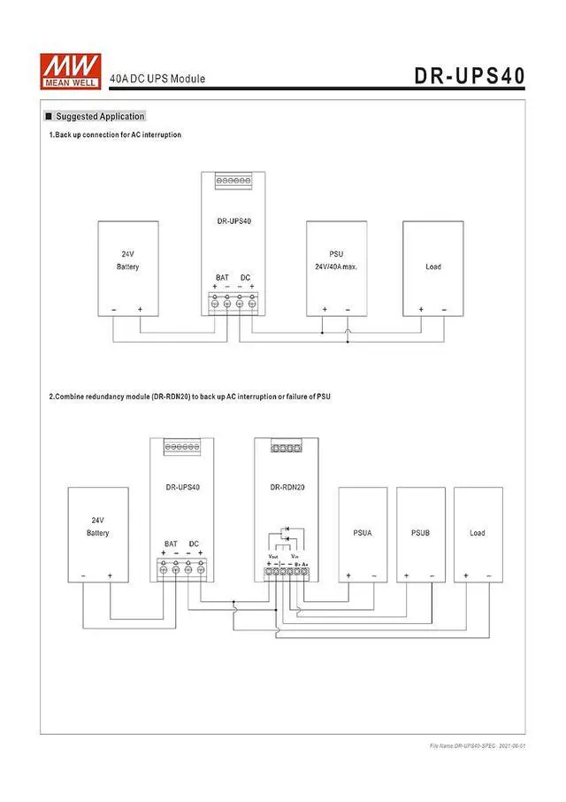 Original Mean Well Uninterruptable Power Supply DC Input 24-29V 40A DC UPS Module Uninterrupted Switching Power Supply Battery Controller for DIN Rail UPS System