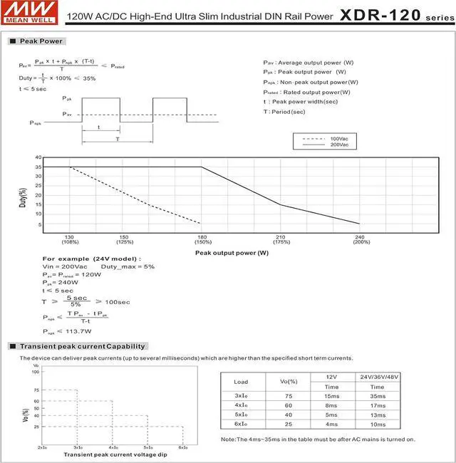 It provides constant current with up to 200% peak power, and can handle instantaneous peak current of 600%.