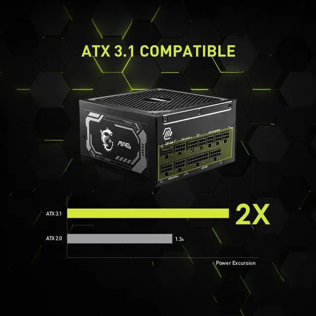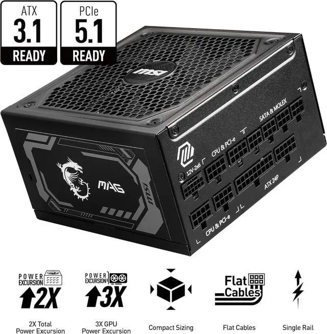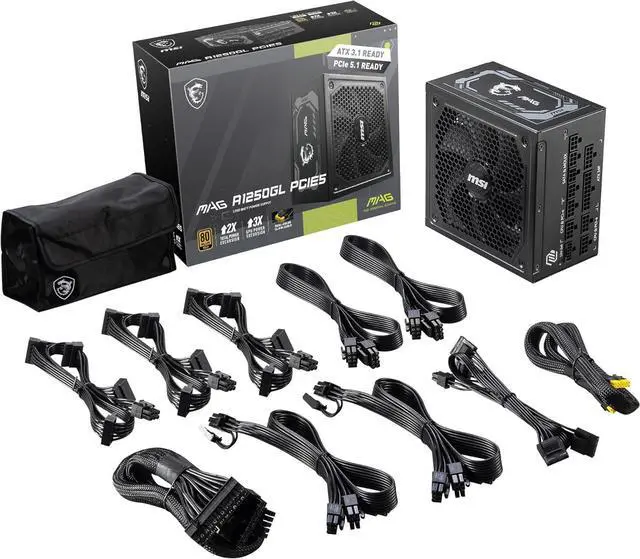 MSI MAG A1250GL PCIE5, Fully Modular Compact Gaming 1250W Power Supply, 80+ Gold, ATX 3.1 & PCIe 5.1 Ready, Native Dual-Color 12V-2x6 Cable, 10 Year Warranty