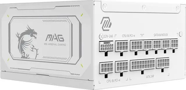 MSI MAG A1000GL PCIE5 White, Fully Modular Compact Gaming 1000W Power Supply, 80+ Gold, ATX 3.1 & PCIe 5.1 Ready, Native Dual-Color 12V-2x6 Cable, Low-Noise, Embossed Jacket Cables, 10 Year Warranty
