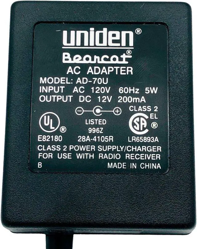 New Genuine Uniden AD-70U AC/DC Adapter Class 2 Power Supply 12V 200mA OEM