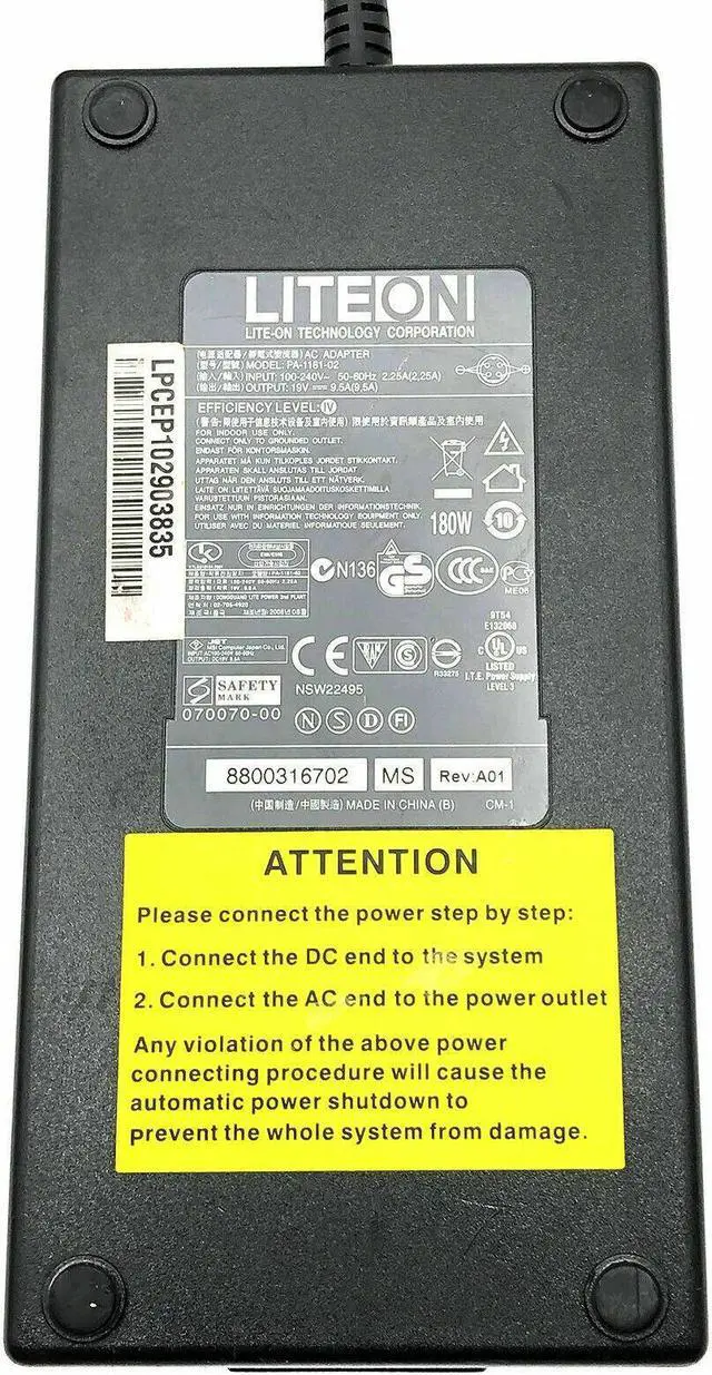 Genuine AC Adapter For Acer Aspire 1700 Series Laptop Charger 180W 4 Pin w/PC