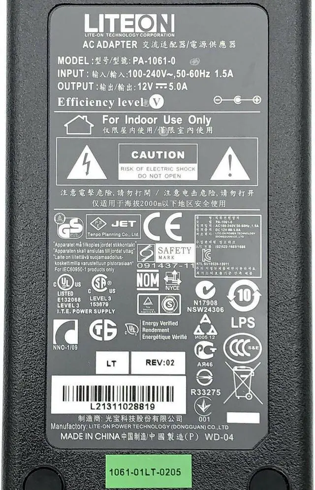 Genuine Liteon PA-1061-0 AC Adapter 12V 5A Power Supply 60W w/PC OEM