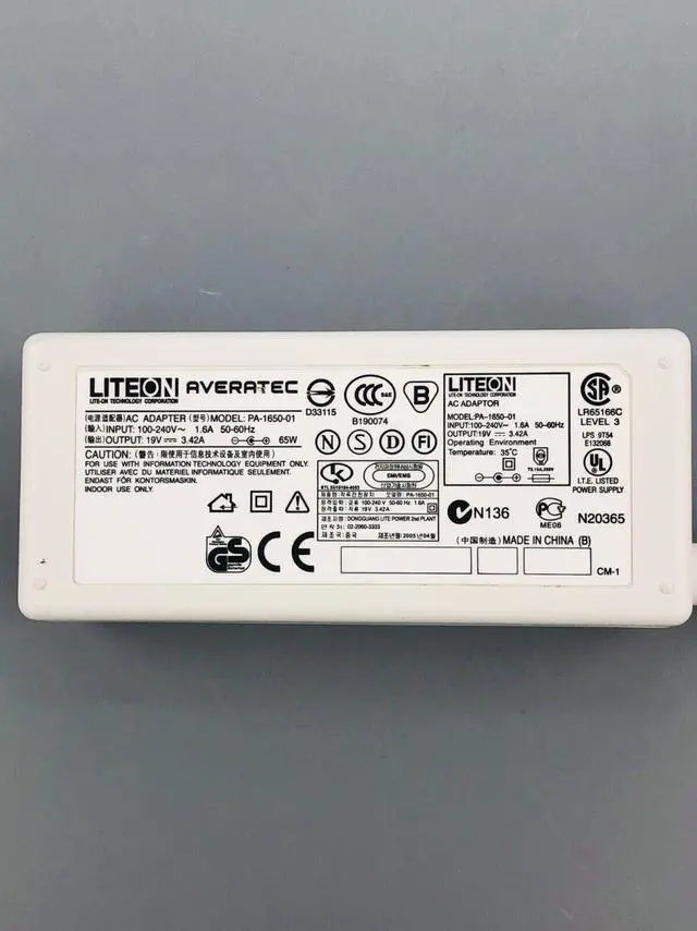 Genuine 65Watt Liteon PA-1650-01 AC Adapter 19V 3.42A Charger w/PC OEM