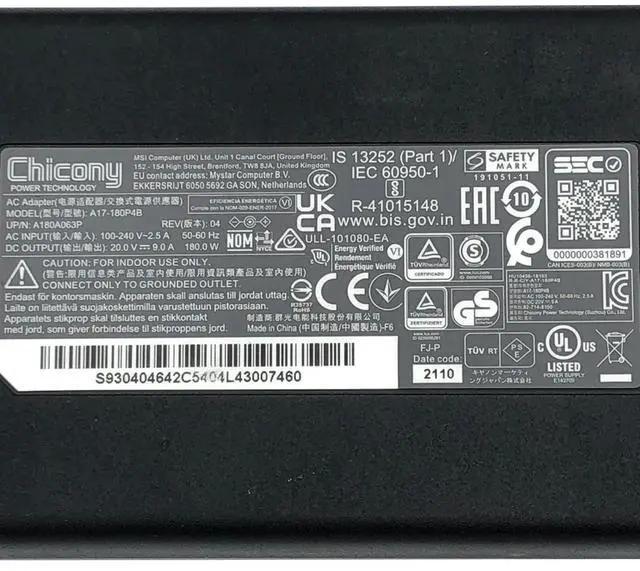 Original Chicony AC Power Supply Adapter A17-180P4B 20V 9A 180W A180A063P w/Cord