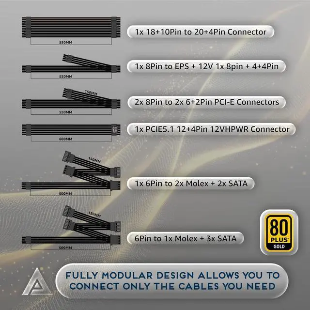 Fully Modular Cables for Clean Builds: Flat black modular cables improve airflow and simplify installation, giving your system a cleaner and more professional look.