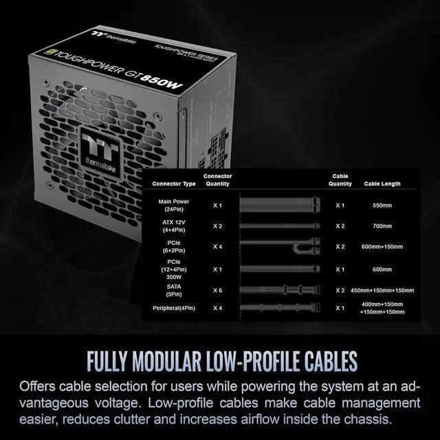 Fully Modular Design: Includes low-profile flat black cables, making cable management easier and improving airflow inside your case.