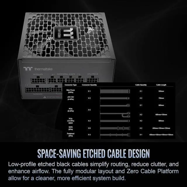 Efficient Routing The included Full Modular cable set now features a flat etched design to provide an improvement in flexibility for routing and management.