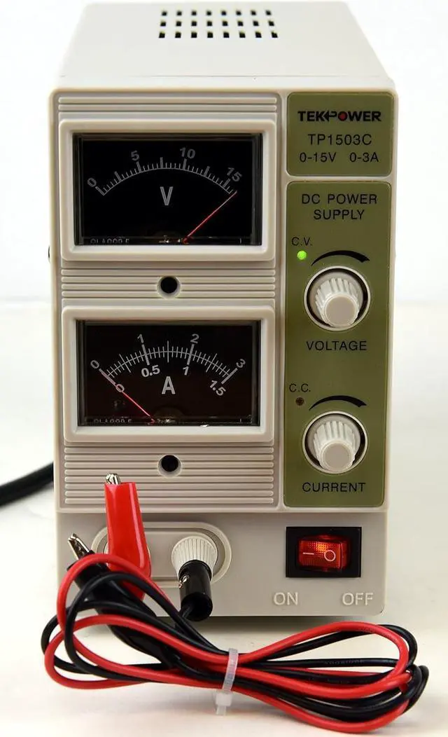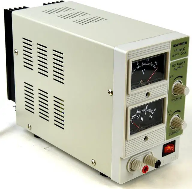 The Tekpower Model TP1503C DC Power Supply is high quality,linear general-purpose DC Power sources. The power supply provides 0-15 volts dc output. The current output of Model TP1503C is 0-3 amps with excellent current stability and meter resolution. Input Voltage: 110/60Hz; Power effect: CV<0.01%+1mV, CC<0.2% + 1mA; Overload effect: CV<0.01% +3mV, CC<0.2% +3mA; Waves and noises: CV<0.5mV r.m.s, CC 3mA, r.m.s; Ripple & Noise: <1mV rms(I>3A), CV<0.5mV rms(I <3A); Environmental: 0 - 102 F (0 -40 C), relative humidity: <90%.