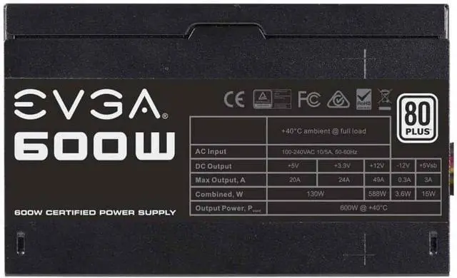 EVGA 600W 80 Plus Certified 100-W1-0600-K1 Power Supply, 600W