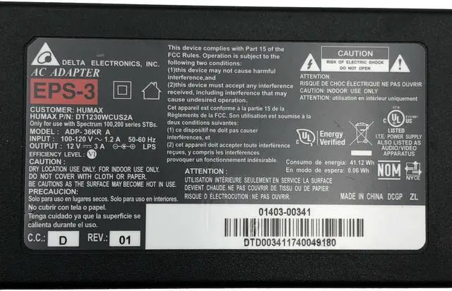 Genuine Delta ADP-36KR A AC Adapter 36W DT1230WCUS2A EPS-3 W/P.Cord
