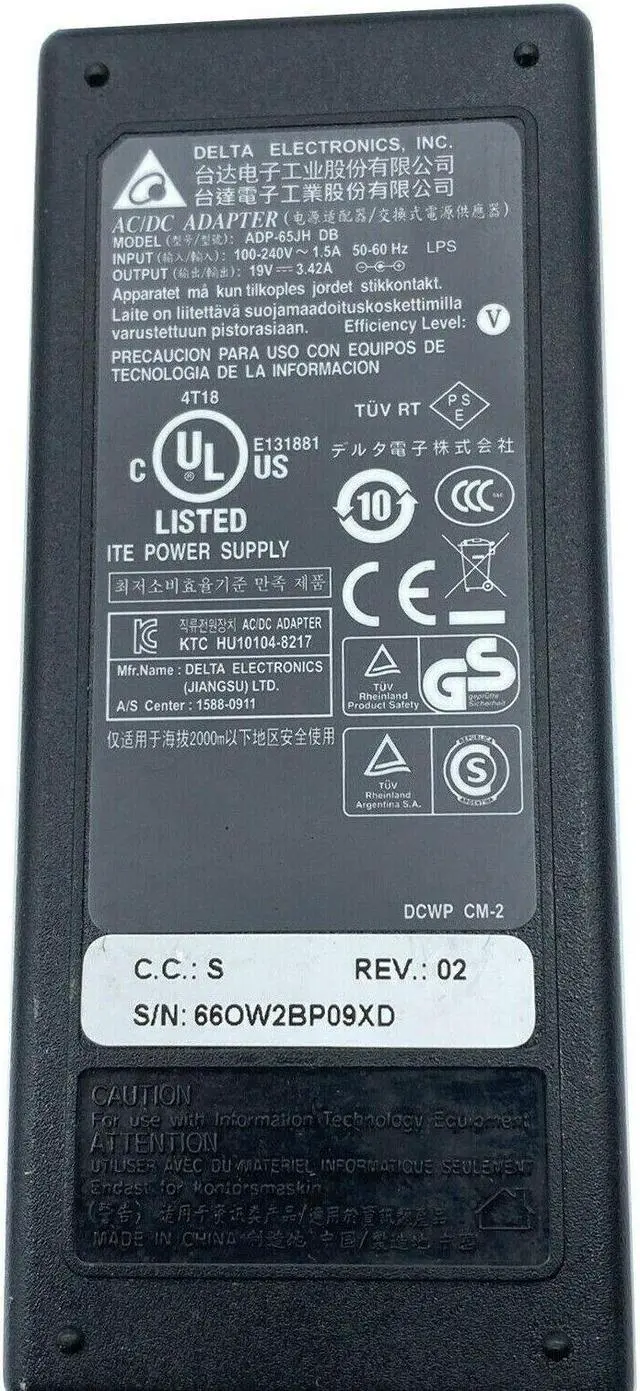 This adapter is tested and guaranteed to be fully functional. The body may have minor cosmetic flaws, dust, scratches, etc., that will not affect its functionality. We thoroughly test our adapters for broken or twisted wires and properly working power jacks. We also make sure there are no cracks or internally loose particles. We sell only Brand Names, Genuine AC adapters. These adapters are manufactured with the top quality materials and include multiple smart features, like safeguarding against IV - incorrect voltage, SC - short circuit, IO - internal overheating, etc.