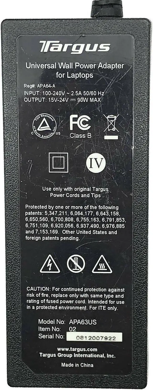 Genuine Targus AC Adapter Universal Wall Power Adapter for Laptops APA63US Cord