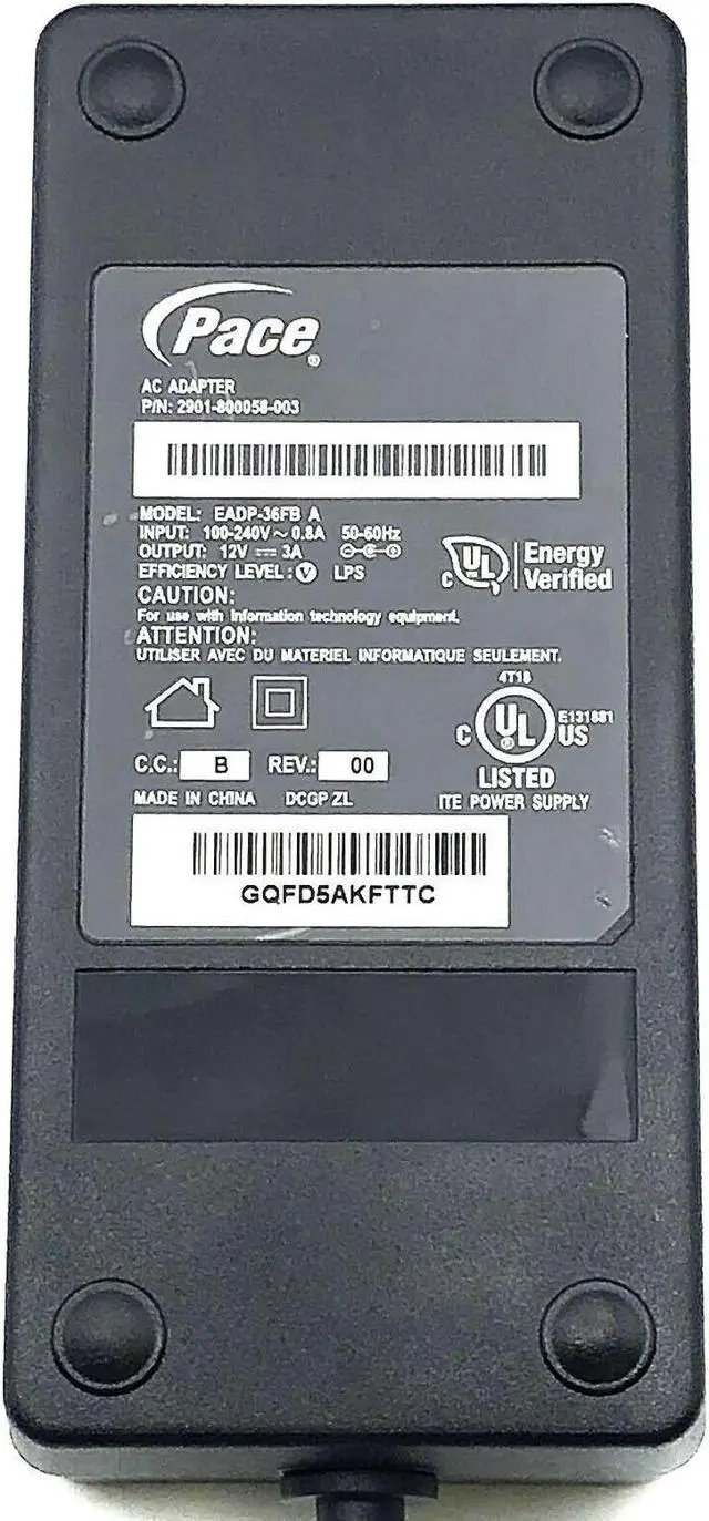 Genuine AC Power Adapter Pace EADP-36FB A 12V 3A Supply OEM W/P.Cord