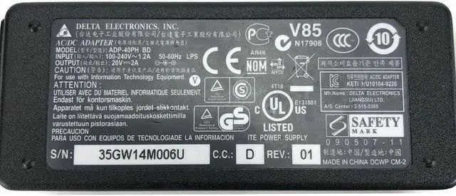 Genuine Delta ADP-40PH BD AC Power Adapter Laptop MSI computers W/Cord