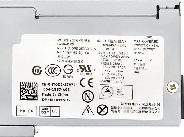 Compatible Models: L250NS-00, PS-5251-08D, D250AD-00, PS-5251-5, H250AD-00, D250A1005L, D250ED-00, DPS-250AB-67 A, F250ED-00, D-0250ADU00-101, D250ND-00, REF, DPS-250AB-73A, AC250NS-00, PCA038, TFX0250D5WB, D250AD-01, D250ED-01, DPS-250AB-68 A, F250AD-00, D-0250ADU00-201, PC7068, HP-D2506R0, DPS-250AB-36, H250ED-00, D250E006L, PS-5251-06 Desktop Power Supply Compatible with DELL.