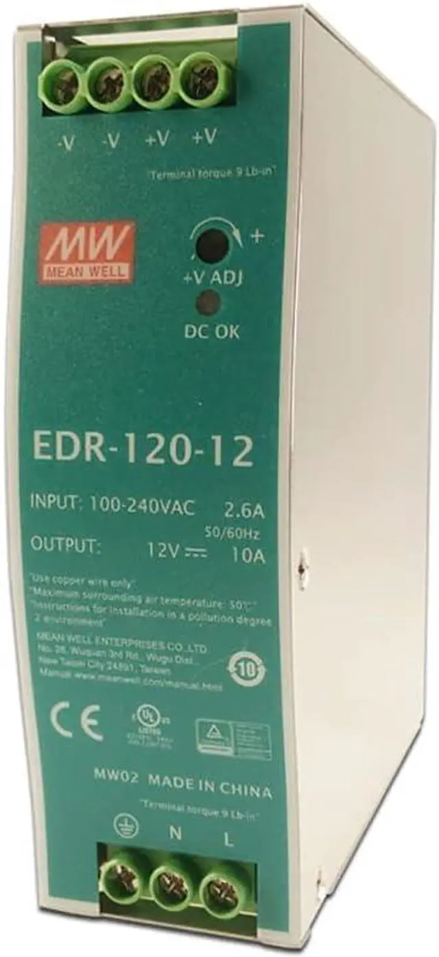 Features : Meanwell Power Supply 12VDC Universal AC input / Full range Protections: Short circuit / Overload / Over voltage / Over temperature Cooling by free air convection Can be installed on DIN rail TS-35 / 7.5 or 15 UL508 (industrial control equipment) approved EN61000-6-2(EN50082-2) industrial immunity level 100% full load burn-in test