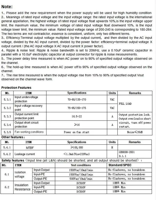 Protections input undervoltage output current limiting output short circuit Input voltage recovery point overload over temperature(85 power off output)